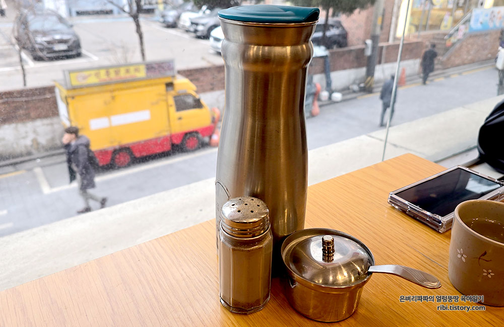 깔끔하고 정돈된 실내 분위기는 비 오는 날의 차분함과 어우러져 더욱 아늑하게 느껴졌습니다.