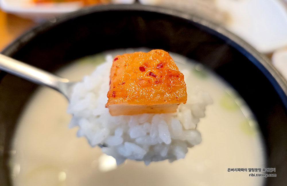 담백하고 구수한 국물을 머금은 밥알이 입을 즐겁게 하고, 속을 편하게 하는 것 같아요.