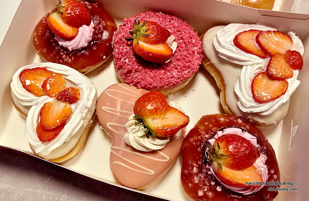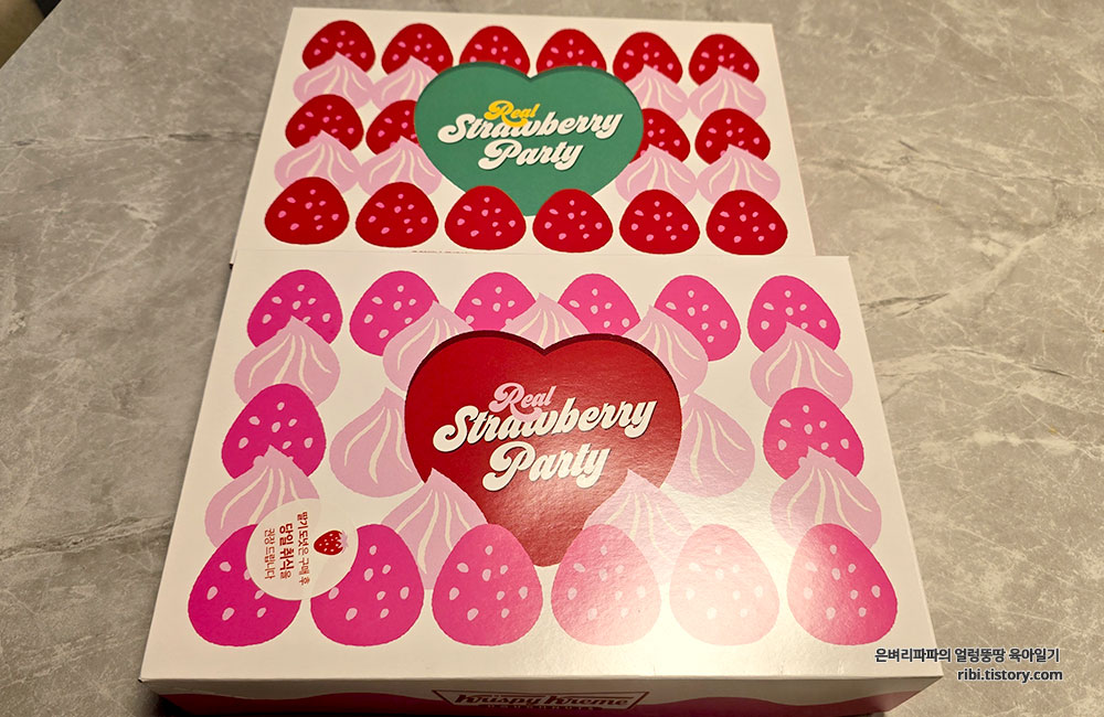 크리스피크림 도넛의 신메뉴인 '리얼 스트로베리 파티' 더블 더즌을 디저트로 먹었습니다.