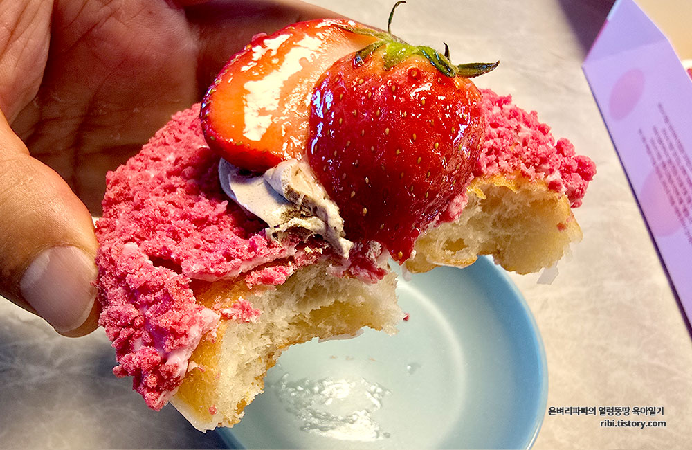 크림의 고소함과 딸기의 상큼함이 가장 조화로운 도넛이었습니다.