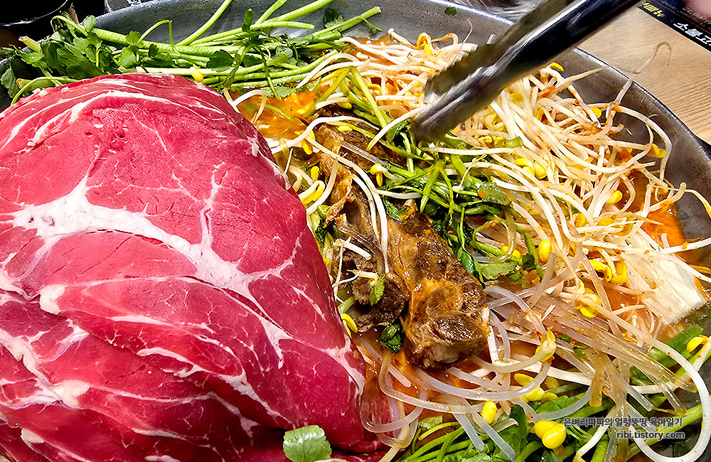 산더미 물갈비는 보자마자 입이 떡 벌어지더라고요.