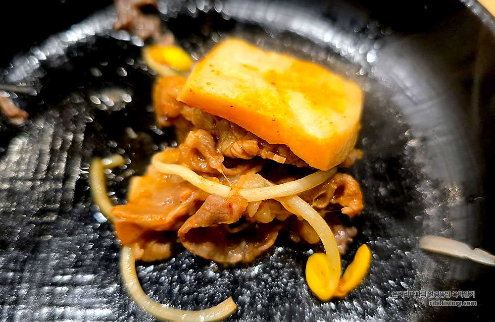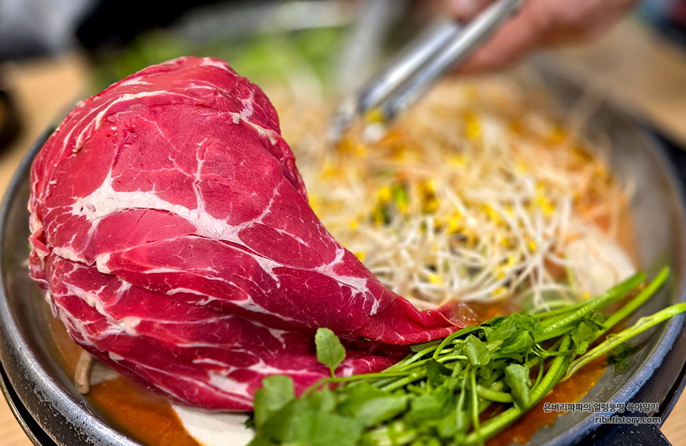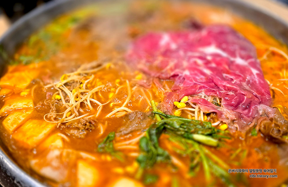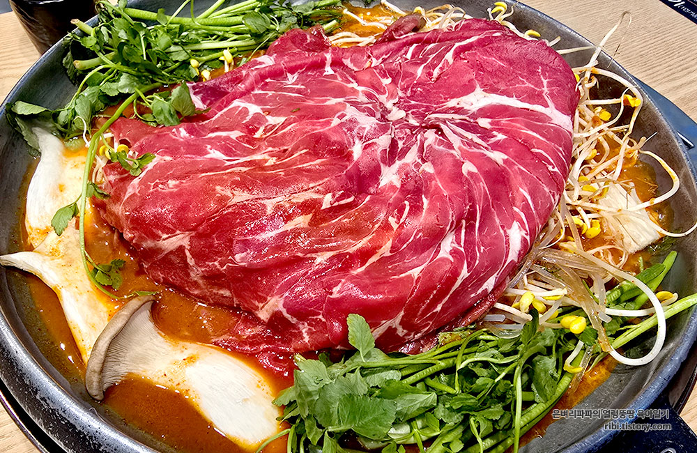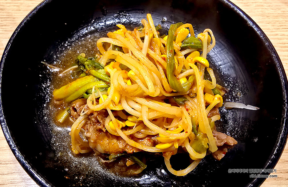 콩나물과 미나리의 아삭함이 고기와 어우러져 식감이 예술이었어요.
