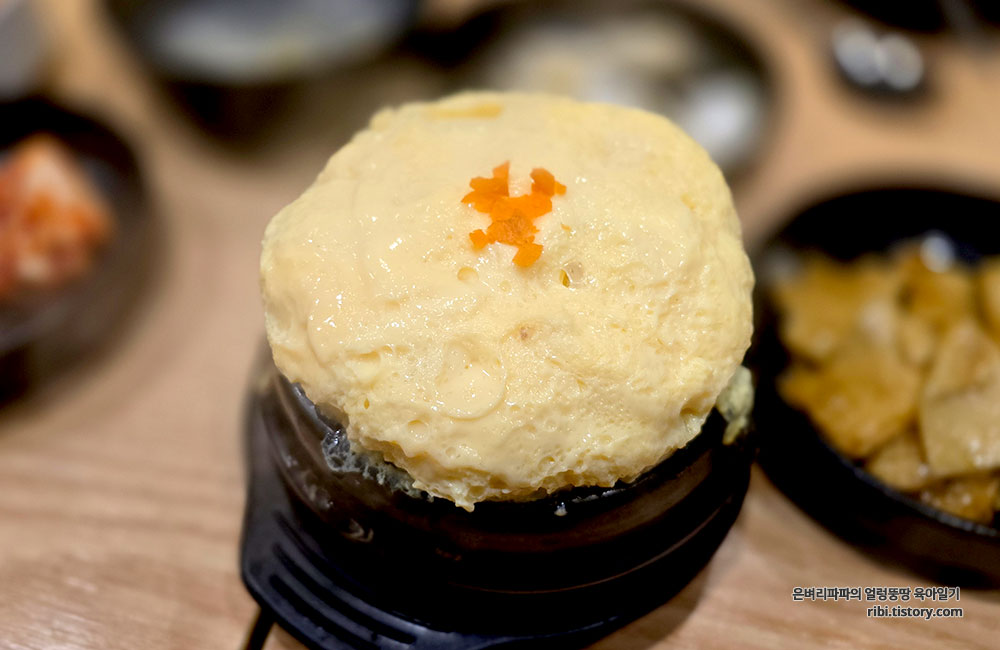 뚝배기를 뚫고 나올듯한 '폭탄 계란찜'이 나왔습니다.