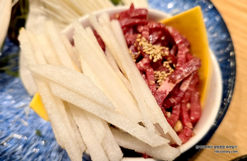 배와 함께 버무려진 육회는 메인 요리가 익기 전 입맛을 돋우기에 충분할 만큼 고소하고 부드러웠어요.