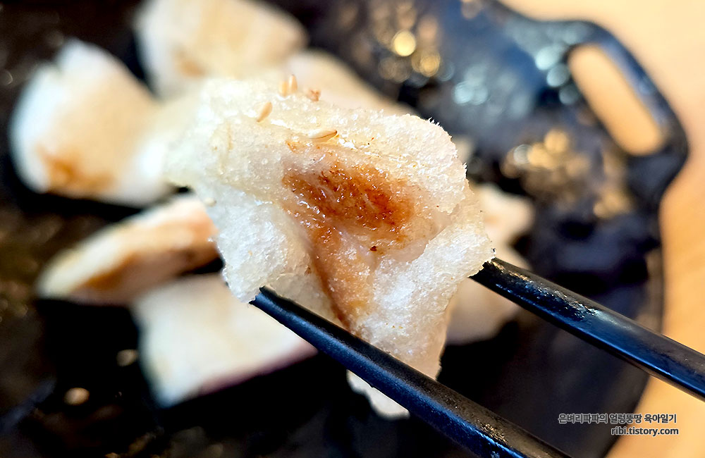 가위로 자를 때부터 '바삭!' 소리가 예술입니다.