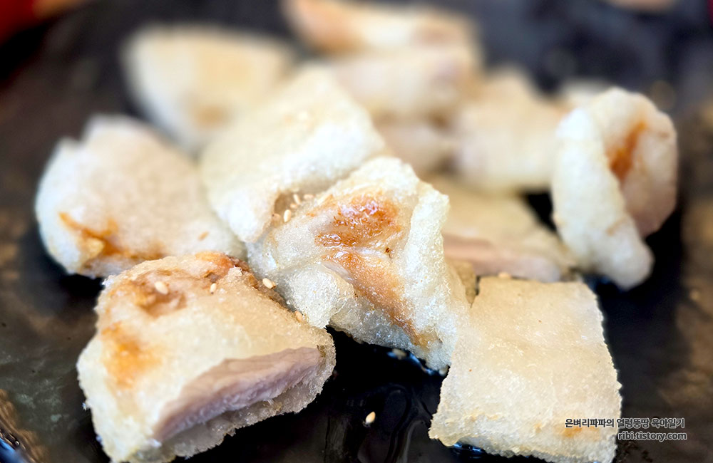 쫀득한 찹쌀 튀김옷 안에 담백한 돼지고기, 그리고 새콤달콤한 소스가 어우러져
