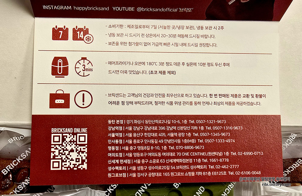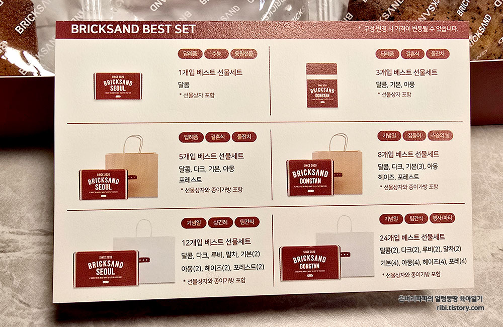 브릭샌드를 처음 만난 건 수년 전, 조카의 결혼식 답례품이었습니다. 친척들에게만 답례품으로 브릭샌드를 준비했었어요. 그때는 동탄본점만 있었을 때였던 것 같아요. 지금은 동탄본점을 비롯해 서울 곳곳에 지점이 있는 것 같군요. 아직 서울 외 지역은 없는 것 같습니다.