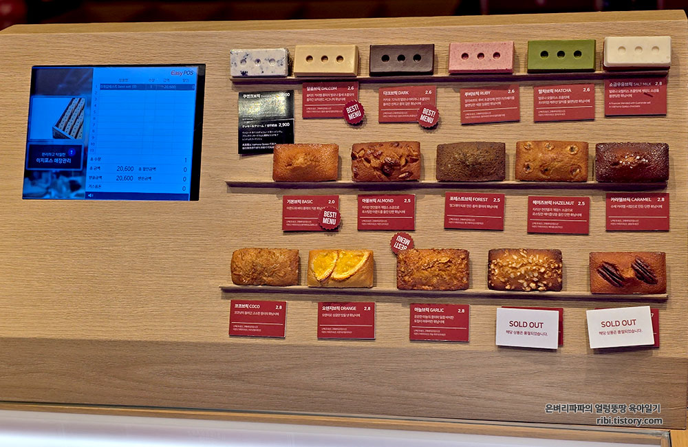 매일 똑같은 출퇴근길인데, 딸아이와 함께하니 색다른 기분이더라고요. 그중에서도 매일 출퇴근길에 오며 가며 눈에 띄던 '브릭샌드' 강남점 딸아이와 간단하게 저녁을 먹고, 엄마를 위해 뭔가를 사가자는 딸아이의 말에 브릭샌드에 들렀습니다. 깔끔한 매장과 줄지어 선 귀여운 벽돌 모양 휘낭시에가 눈길을 끕니다.