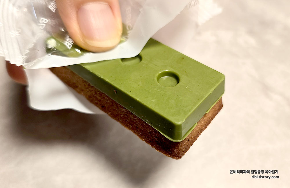 아내가 선택한 말차브릭은 진하 말차 향이 느껴지는 초콜릿이 더해져 쌉싸름하면서도 고급스러운 단맛을 내는 것 같았어요.