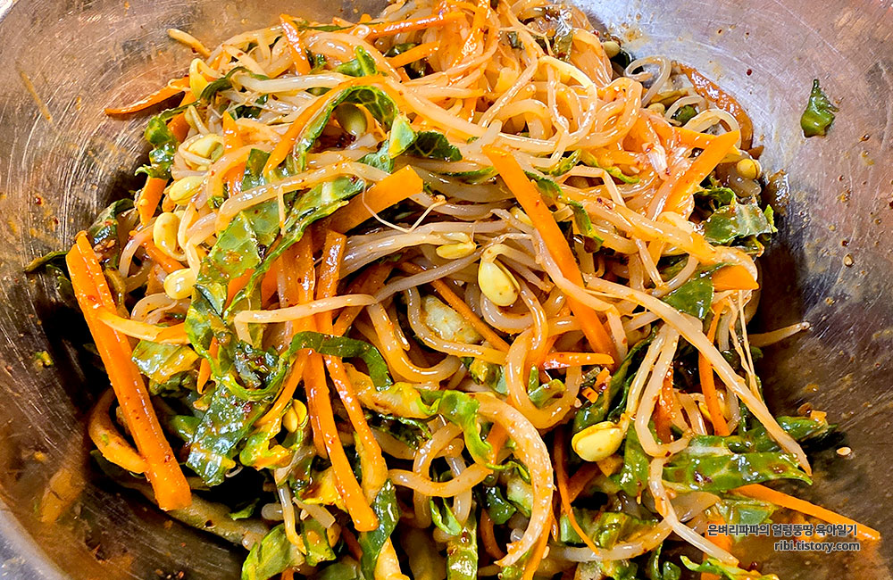 콩나물과 당근이 씹을 때마다 경쾌한 소리를 냅니다.