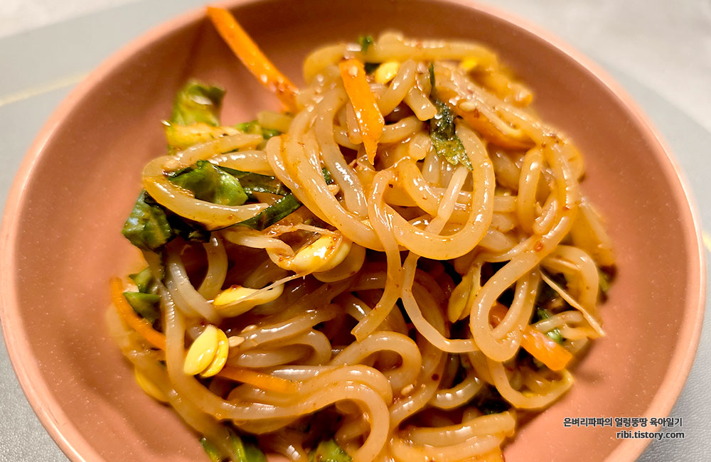 무엇보다 직접 만든 양념장이 자극적이지 않으면서도 면과 채소를 조화롭게 감싸주네요.