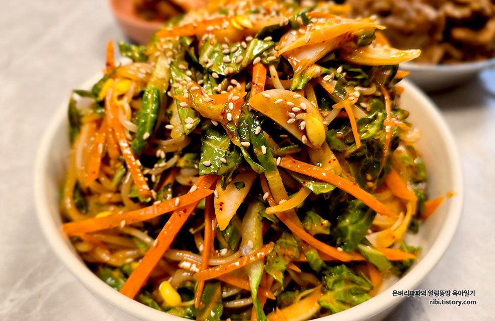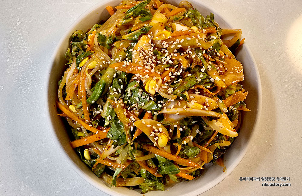 입안에서 터지는 채소들의 아삭한 반란으로 기분 전환을 제대로 한 주말 한 끼였습니다.