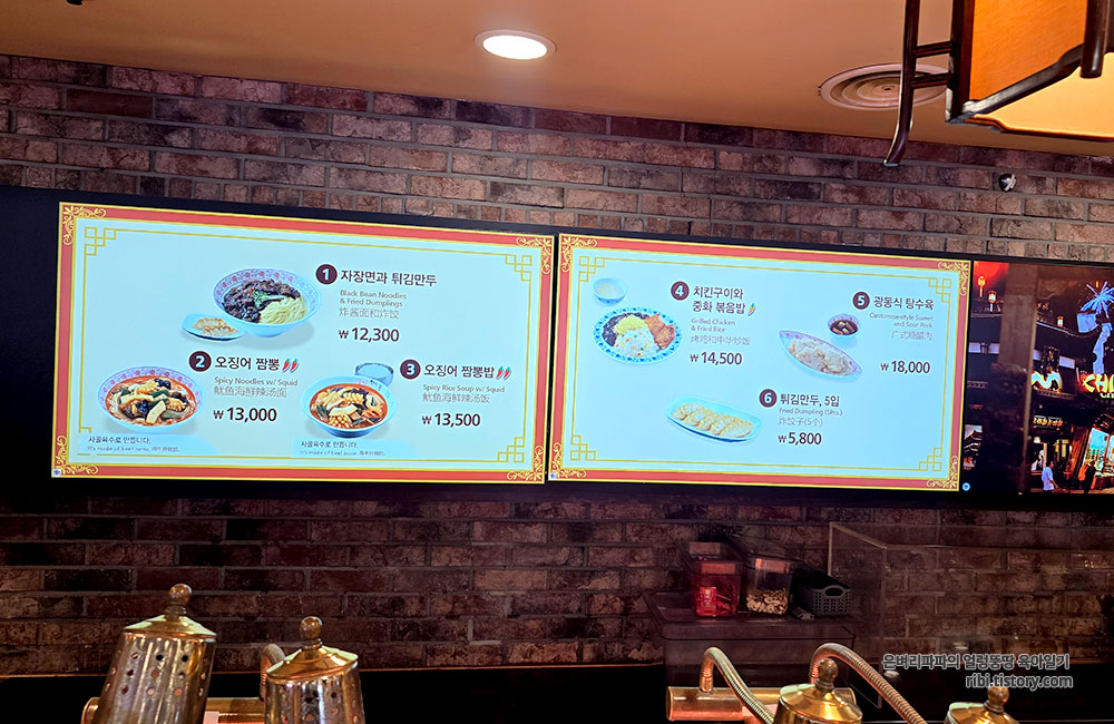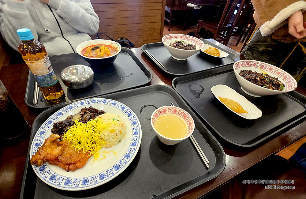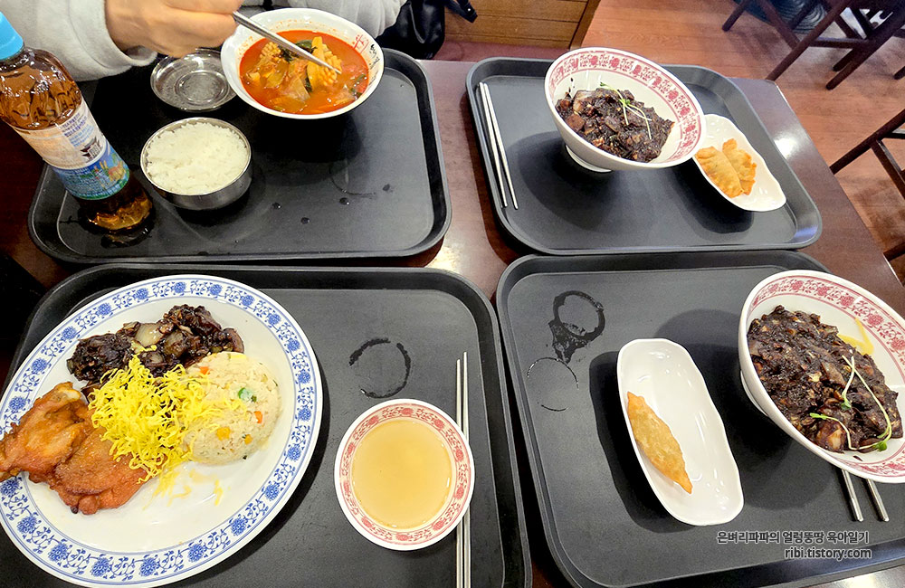 아이들은 짜장면과 만두튀김세트를, 아내는 오징어 짬뽕밥을,