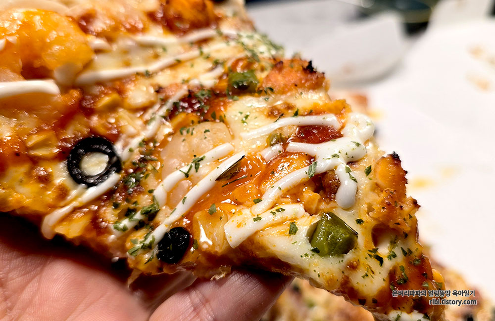 크리미 한 소스와 어우러진 쉬림프 피자는 반올림의 스테디셀러인 이유를 증명하더군요.