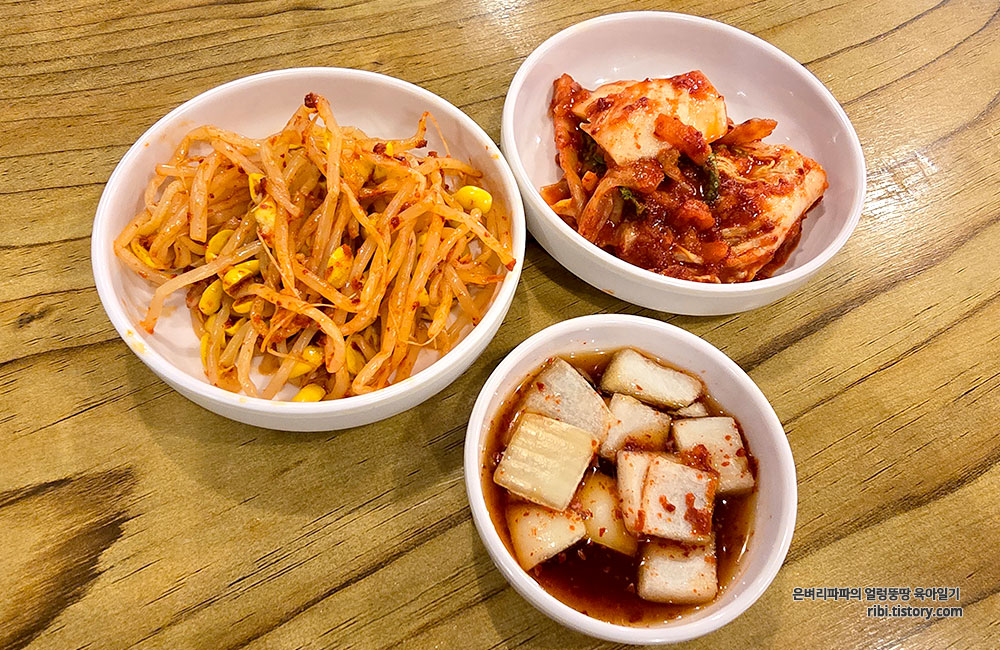 콩나물무침과 김치 등 밑반찬도 전과 찰떡궁합이었어요.