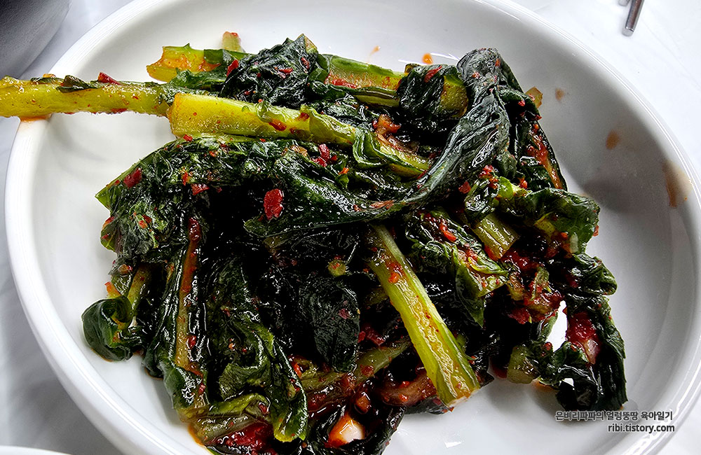 함께 나온 반찬접시에 열무김치와 양배추겉절이를 먹을 만큼 덜어 봅니다.