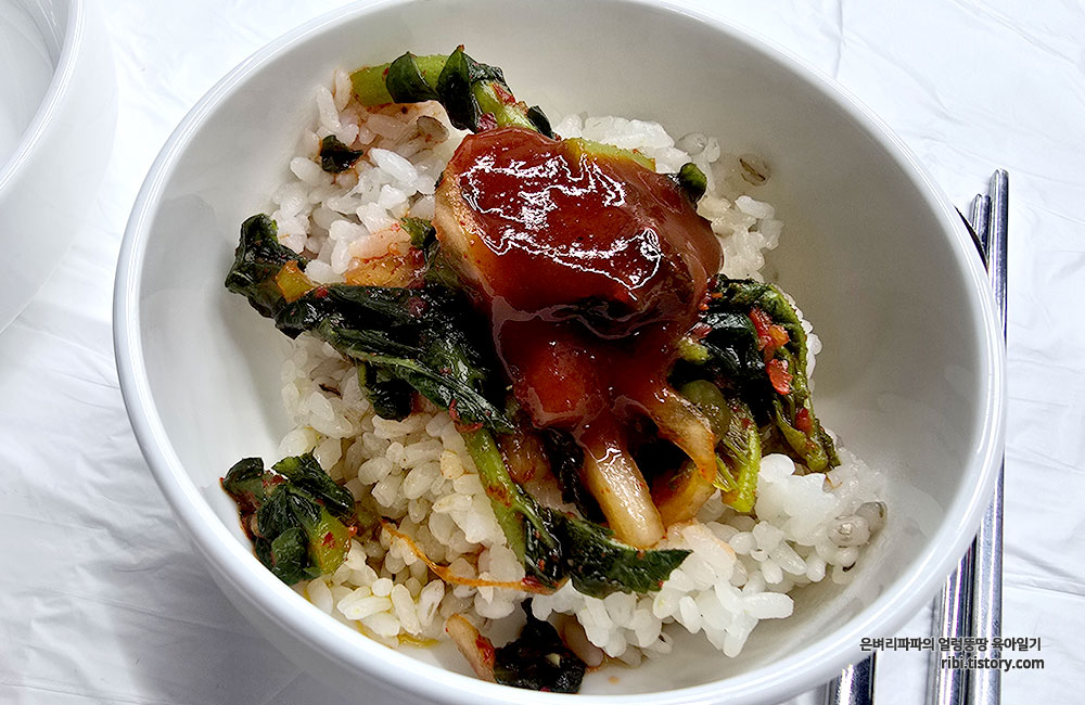 일반적인 배추김치와는 또 다른 아삭한 식감과 매콤한 양념이
