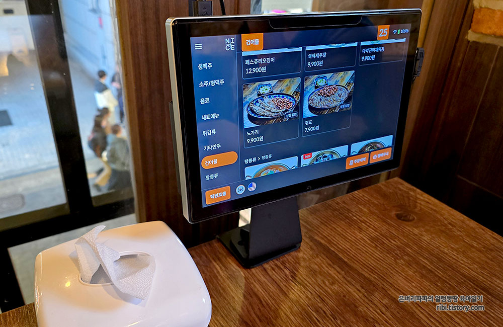 테이블마다 비치된 티오더로 간편하게 주문할 수 있어