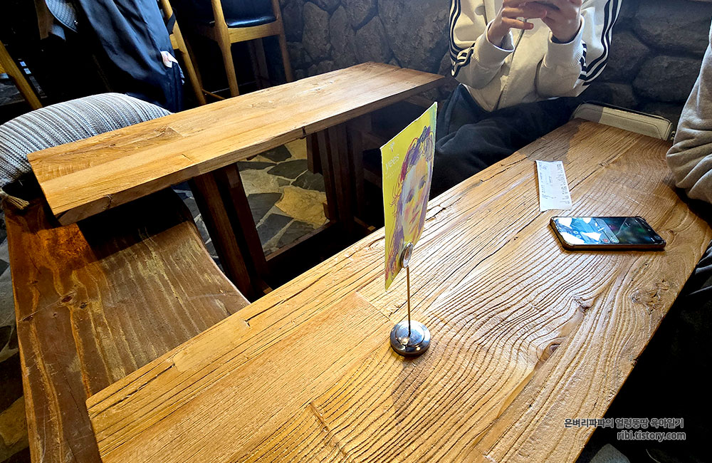 메뉴판과 진동벨을 들고 좁다란 계단을 올라 매장 안으로 들어갑니다.