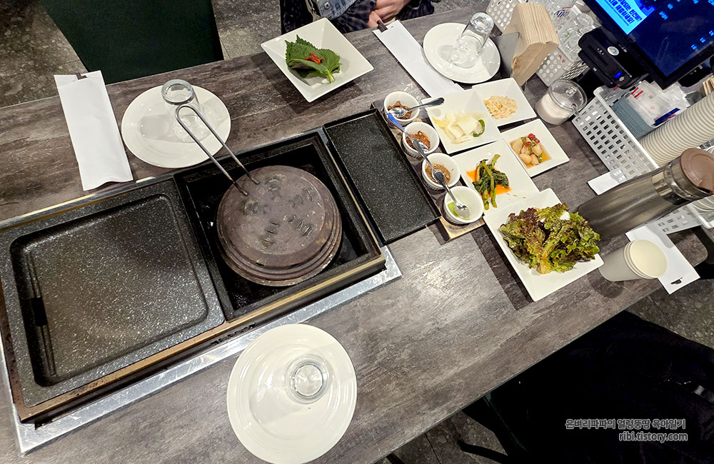 달궈진 불판 위에서 치익 소리를 내며 익어가는 모습은 보는 것만으로도 힐링이더라고요.
