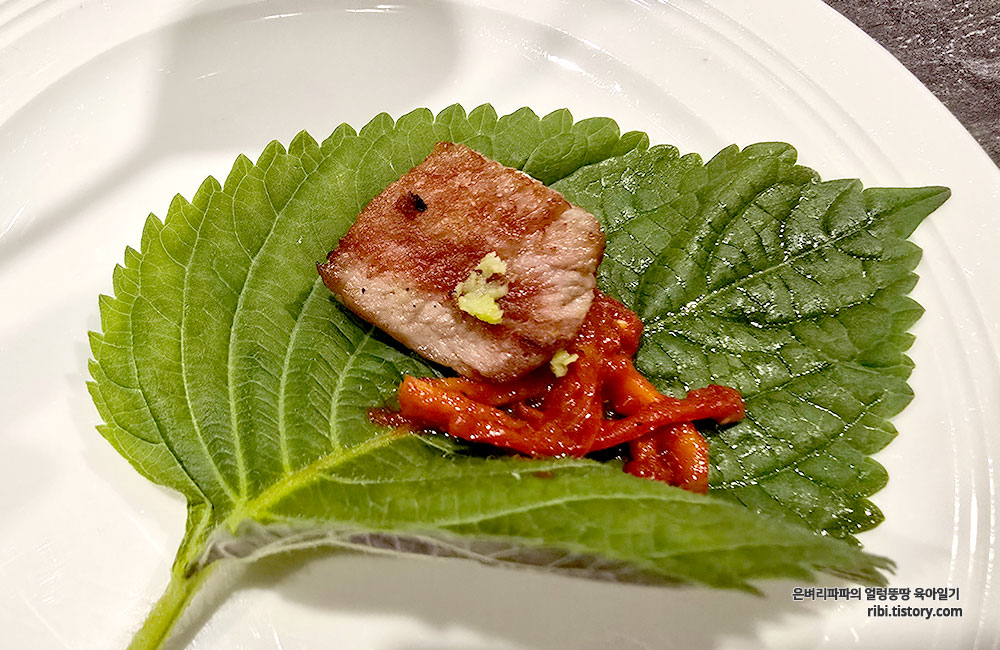 향긋한 깻잎 향 뒤로 밀려오는 고기의 육질이 그야말로 '맛의 정점'을 찍어줍니다.