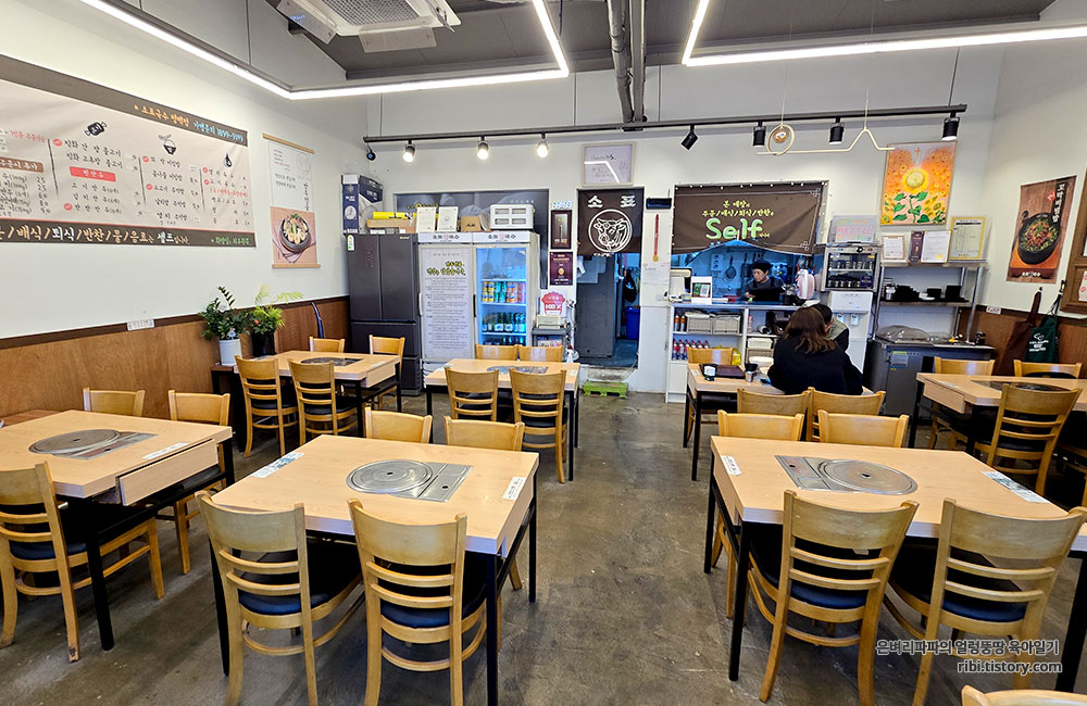 메장 내부는 4인 테이블로 간격이 넓고 깔끔했습니다.