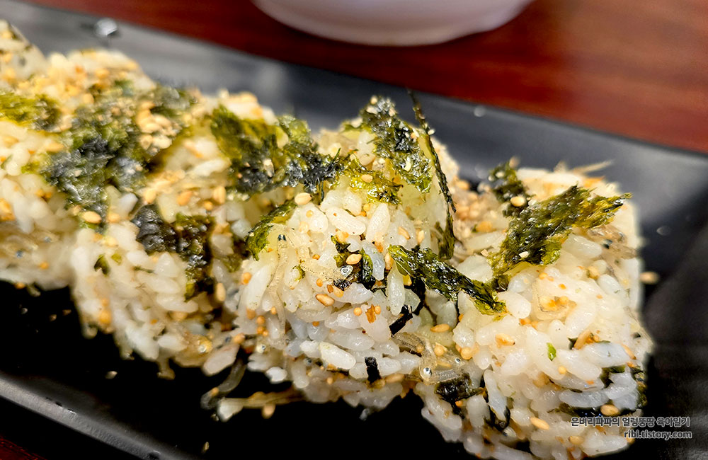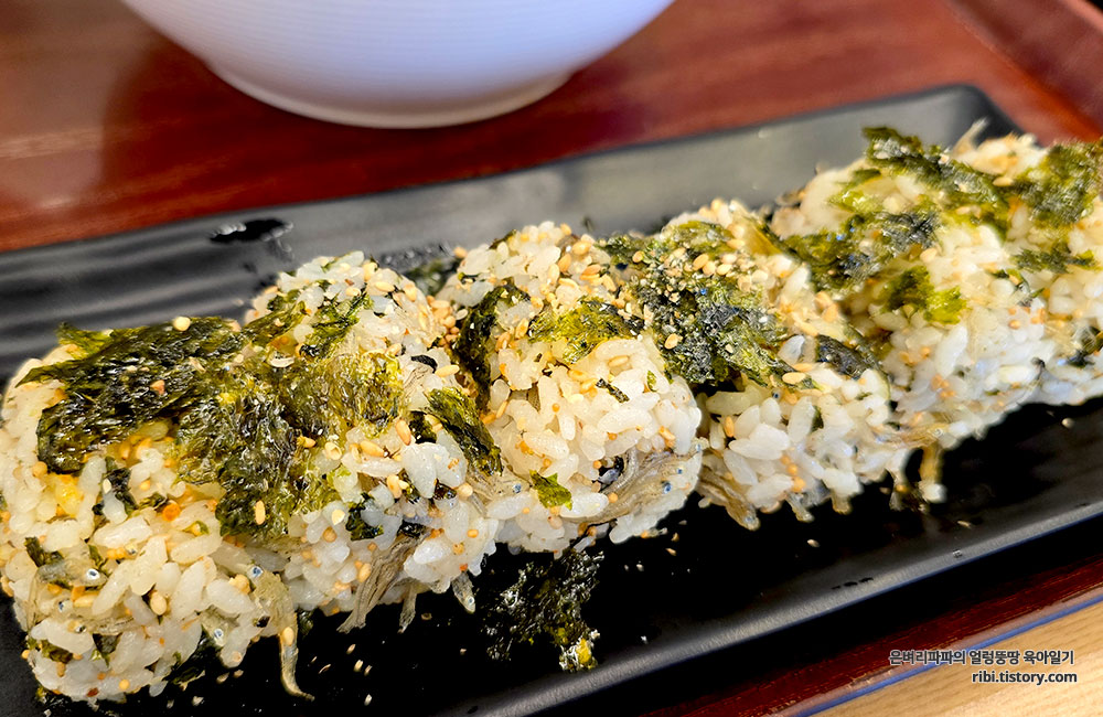 김가루, 통깨, 그리고 직접 만든 고소한 잔멸치가 함께 어우러져 고소함 그 자체였습니다.