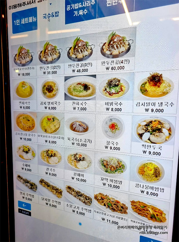 가게 내부 메뉴판에는 없지만, 키오스크에는 다양한 국수메뉴가 있습니다.