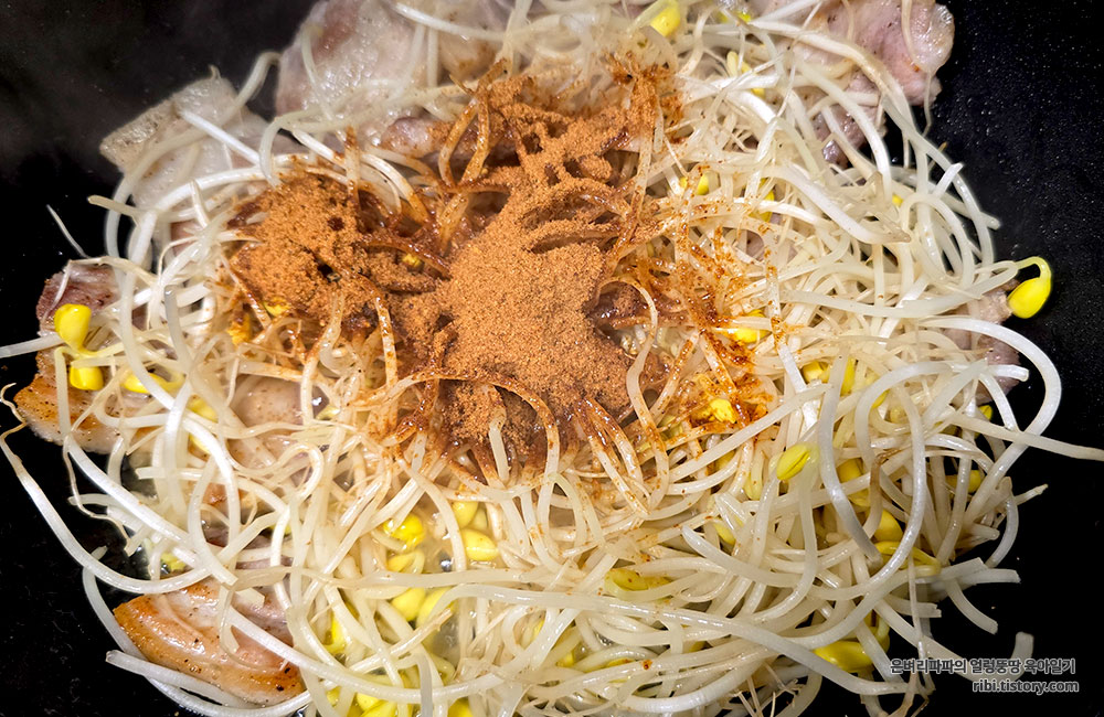 국물 없는 이색라면 레시피~ 삼겹살콩나물 볶음라면~!